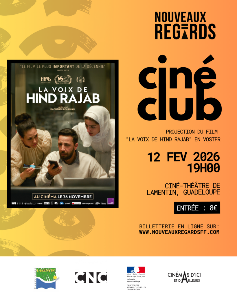 Le jeudi 12 février 2026 à 19h, le Ciné Théâtre de Lamentin accueille la projection de La Voix de Hind Rajab, un film qui nous rappelle que le cinéma n’est pas seulement un espace de récit, mais aussi le moment de regarder le monde en face.